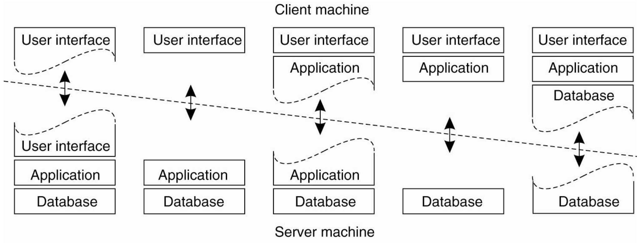 - The user-interface level: input/output을 담당, 주로 client에 구성되는 것이 알반적, 현대에 와서 UI말고도 data를 가공하는 등 많은 role이 추가되었다.