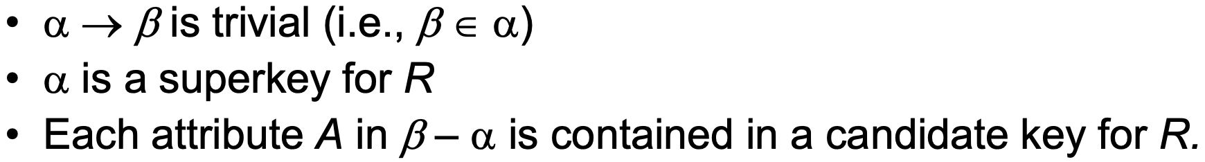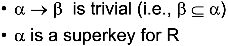 Where the right-hand side set of attributes is already contained in the left-hand side.