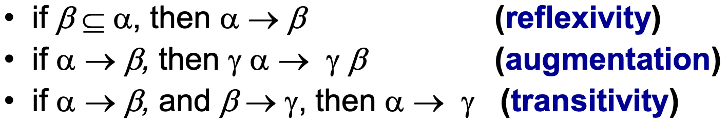 - Sound: They only produce dependencies that truly hold.(functional dependency가 말이 되야한다.)