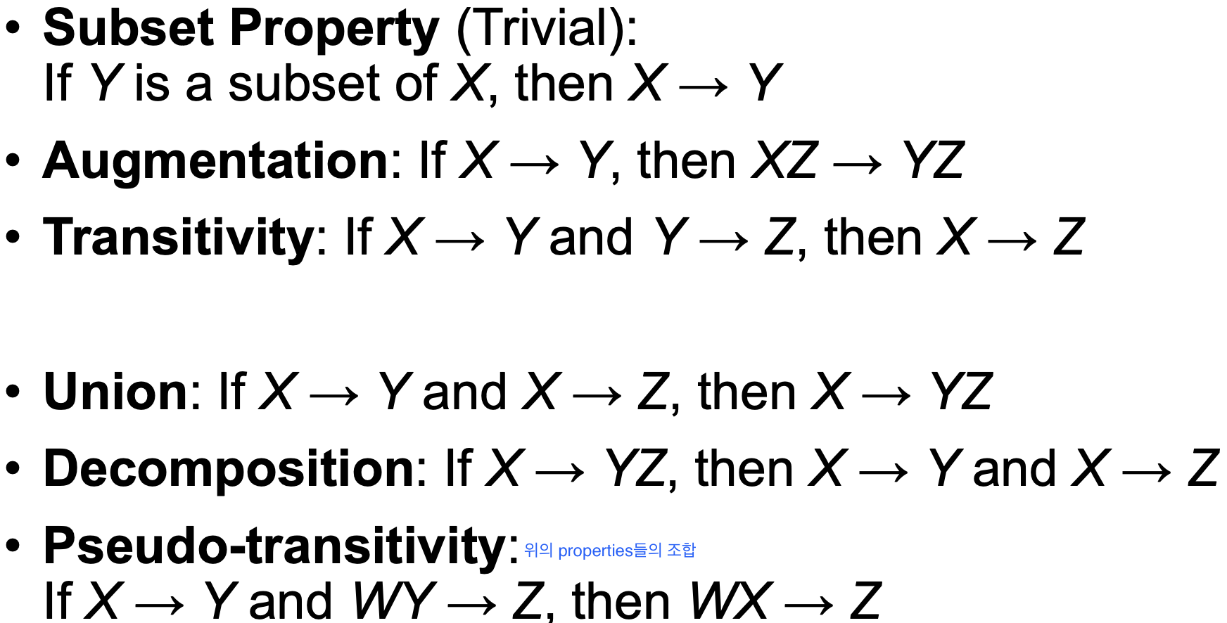 Armstrong’s Axioms를 바탕으로 properties를 추론 할수 있다.