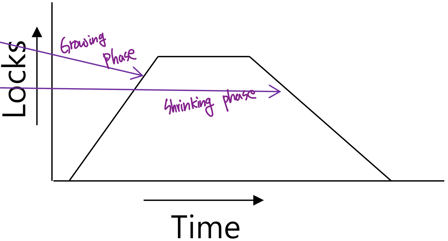 - Rigorous two-phase locking: 모든 lock에 대해 hold 해