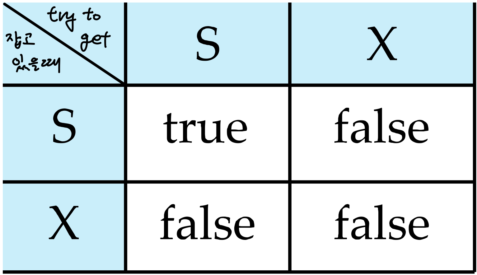 - X-lock은 아무도 특정 resource에 대해 lock을 hold하지 않았을 때만 가능