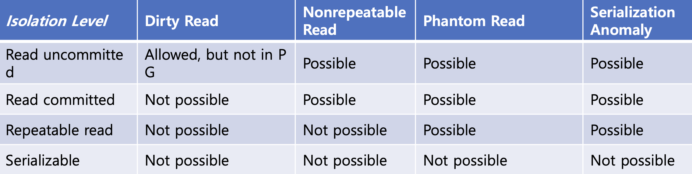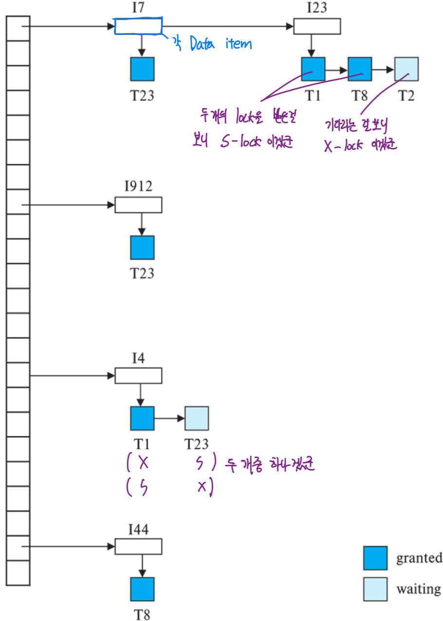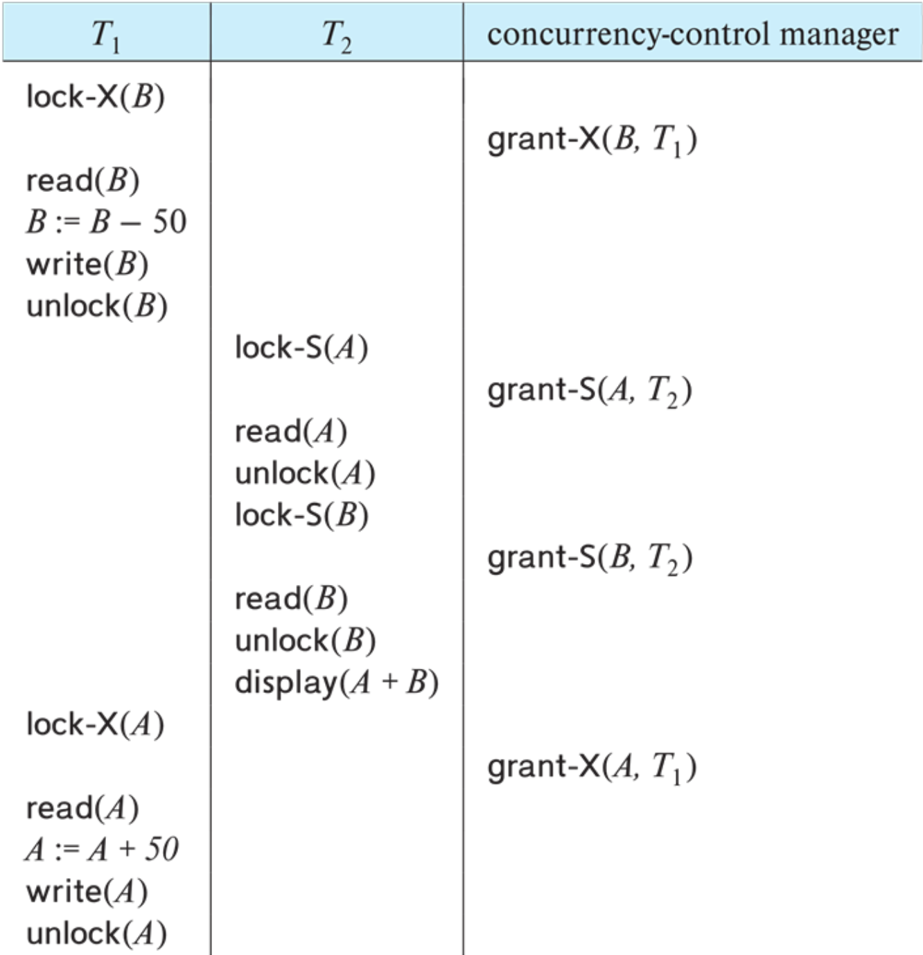 - 특정 resource에 X-lock이 걸려 있으면 다른 X-lock, S-lock이 lock을 걸수 없어