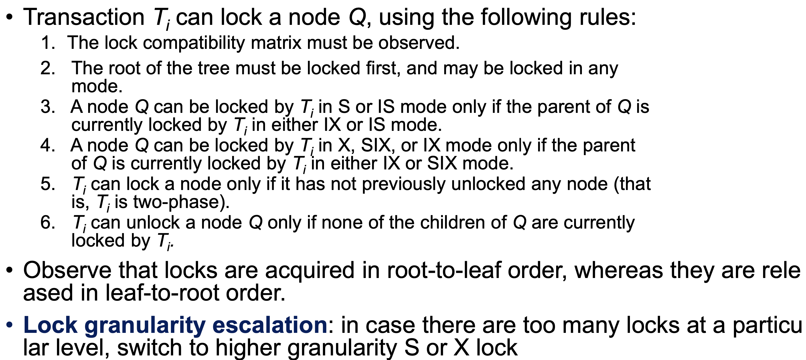 - Ti can lock a node only if it has not previously unlocked any node (that is, Ti is two-phase).